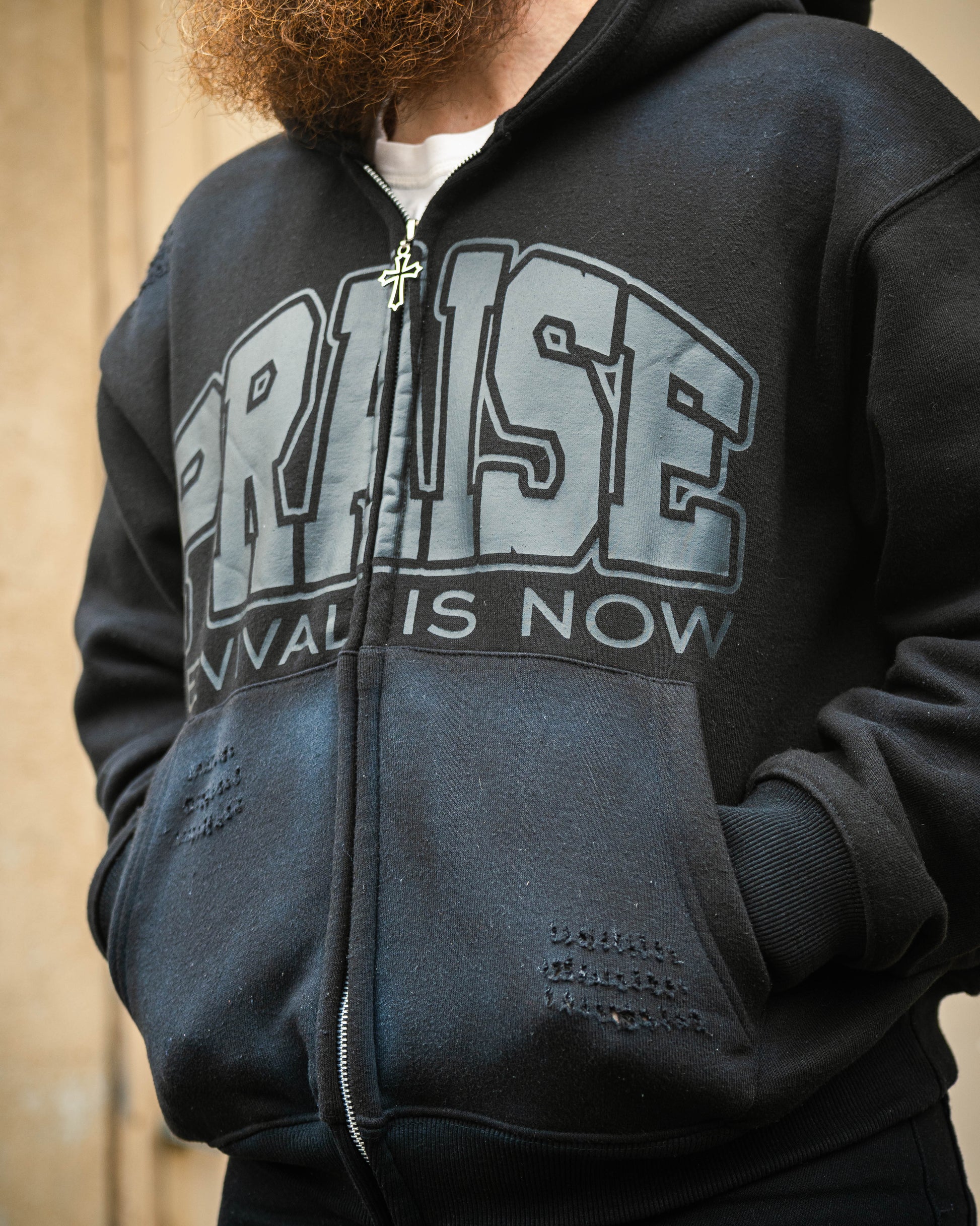 The Revival Zip Up Hoodie fuses elevated streetwear with faith-forward design, crafted for those who navigate the city, the office, and the church with equal style. This heavyweight 420GSM cotton fleece piece is luxuriously soft, lightly distressed for vintage texture, and finished with a custom cross zipper for a signature touch. Every hoodie is cut and sewn from scratch, ensuring a garment that feels as exclusive as it looks.