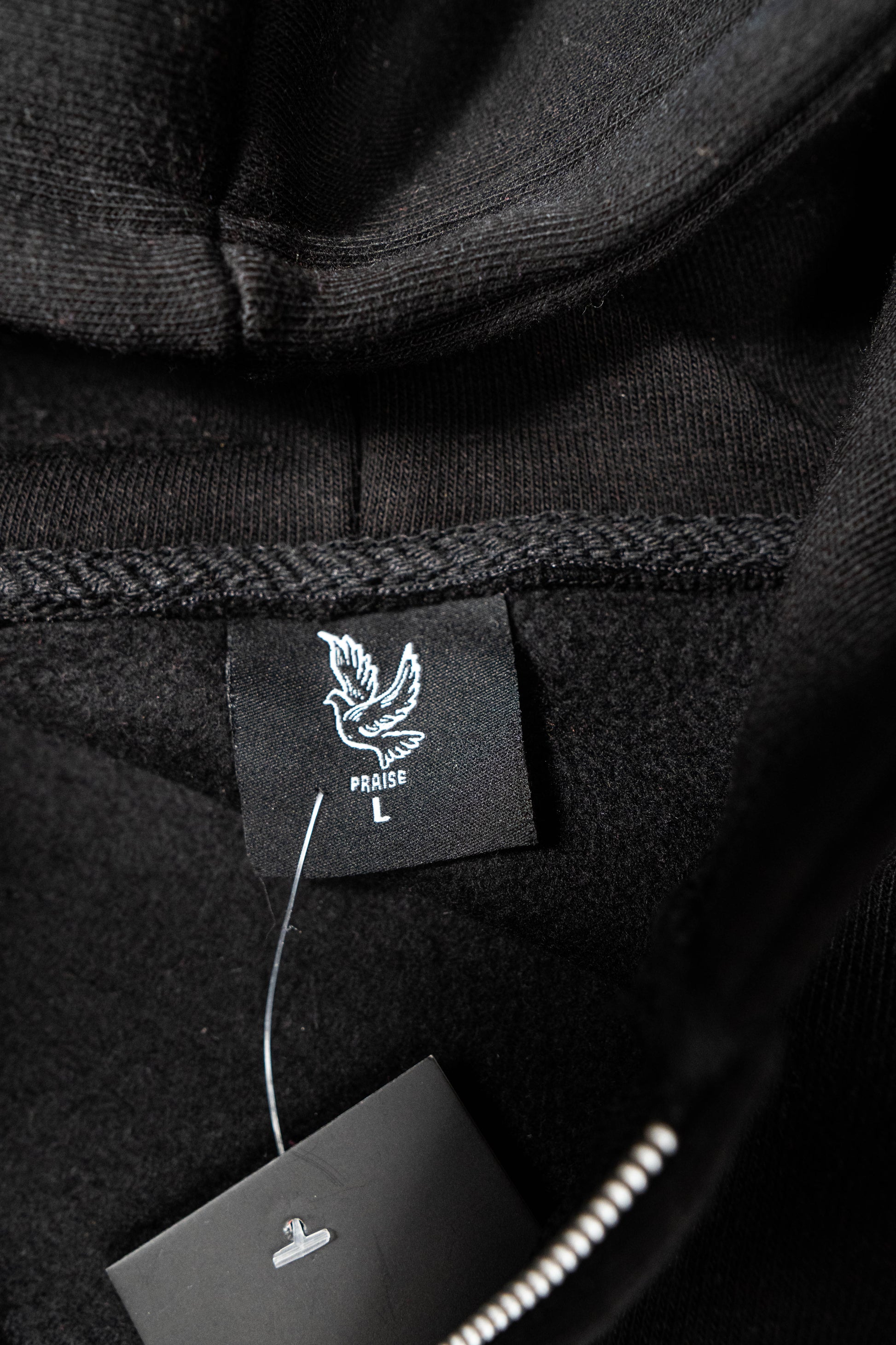 Embroidered Praise patch across the chest, designed to seamlessly hide the zipper so the letters connect